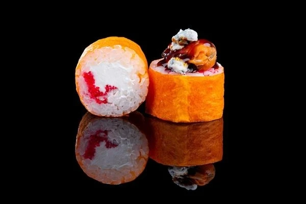 Маменори, рис, сыр, масаго, снежный краб, спайси соус, мидии, унаги соус, сыр с голубой плесенью.
