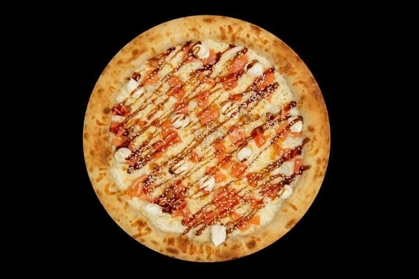 Тесто бруклинское, сливочный соус, моцарелла, лосось, сливочный сыр, унаги соус, кунжут белый. (30см.)