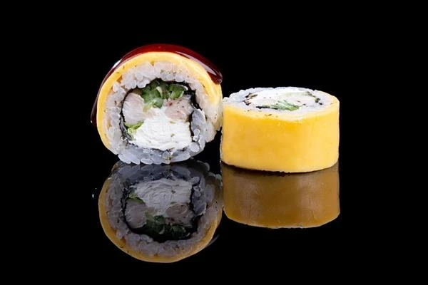 Рис, нори, сыр, копченая курица, огурец, айсберг, чеддер, унаги соус.