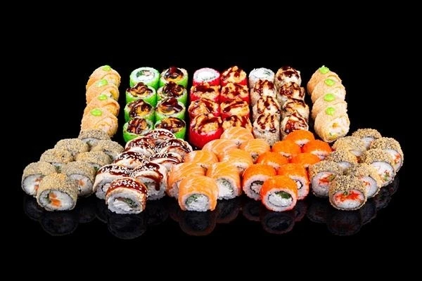 Филадельфия (рис, нори, сыр, огурец, лосось.), Канада (Рис, нори, сыр, лосось, огурец, угорь, унаги соус, кунжут. могут попадаться кости в угре.), Калифорния (рис, нори, снежный краб, майонез, огурец, авокадо, масаго.), Запеченный с креветкой и моцареллой (не горячее блюдо! рис, нори, сыр, огурец, масаго, креветка, моцарелла, спайси соус, унаги соус.), Чикен Хот (не горячее блюдо! рис, нори, сыр, кунжут, курица, майонез, унаги соус.), Запеченный с мидиями (не горячее блюдо! рис, нори, сыр, угорь, чука, масаго, спайси соус, мидии, унаги соус.), Темпура с креветкой (не горячее блюдо! маменори, рис, чеддер, огурец, креветка, кляр, сухари, васаби соус.), Темпура калифорния (не горячее блюдо! нори, рис, масаго, огурец, снежный краб, кляр, сухари.), Темпура с лососем (не горячее блюдо! рис, нори, сыр, лосось, огурец, кляр, сухари.).